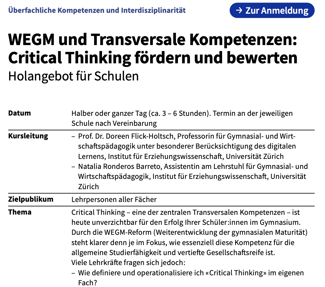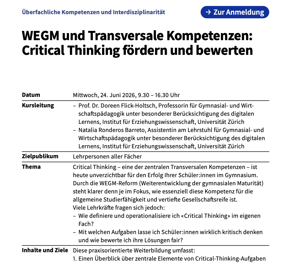 WEGM und Transversale Kompetenzen: Critical Thinking fördern und bewerten